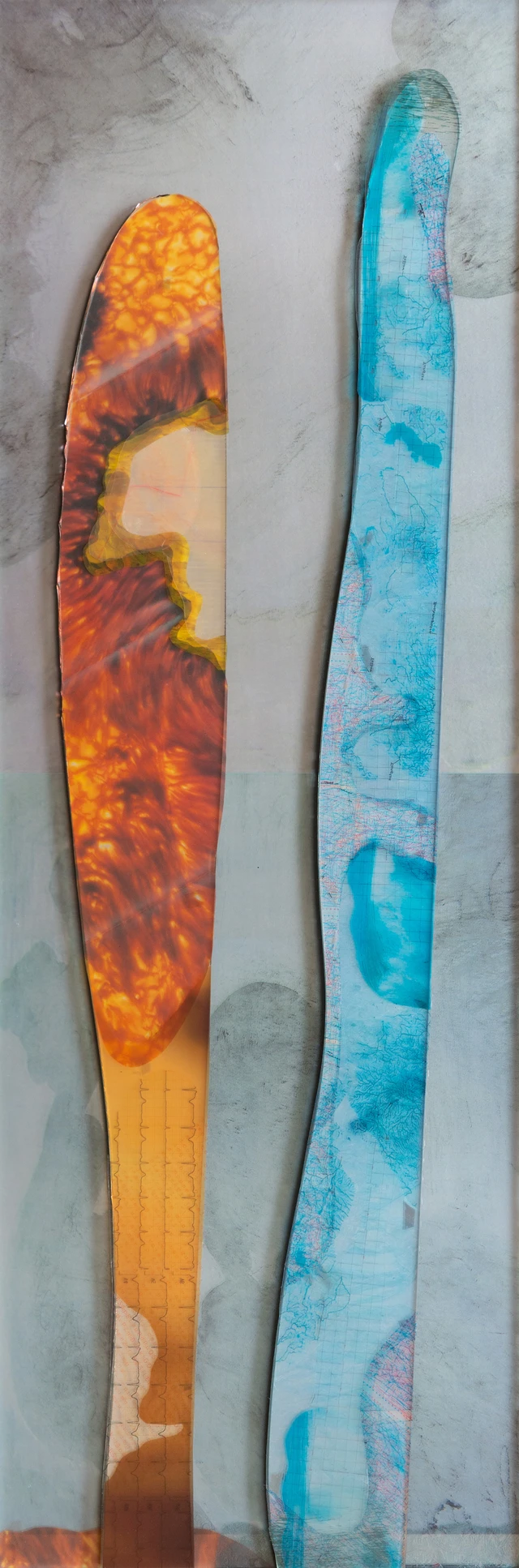 Employing mixed media, these artworks combine glass, glass mirrors, transparencies and paper, often with the addition of found objects or objects made using various kinds of clay. Some of the objects are internally illuminated or employ video projection, either projected from within or onto them from the outside, often in combination with audio installations. A house should be a place of safety. It is the delimited space where we dwell. The house is our primal universe, a place of memory. We too are the house.